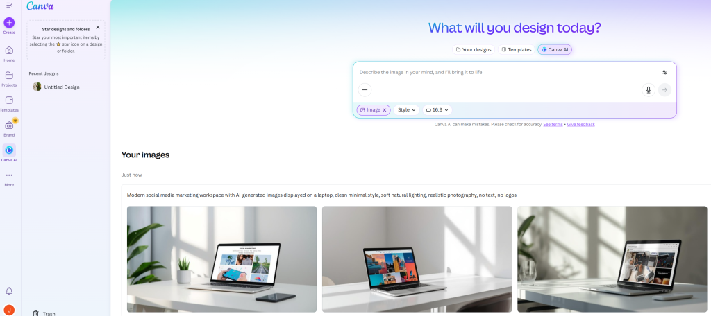 Canva combines its established design platform with AI image generation capabilities, offering a comprehensive solution for social media content creation. Its strength lies in providing pre-designed templates optimized for various social media dimensions, along with an intuitive interface accessible to users without design experience.