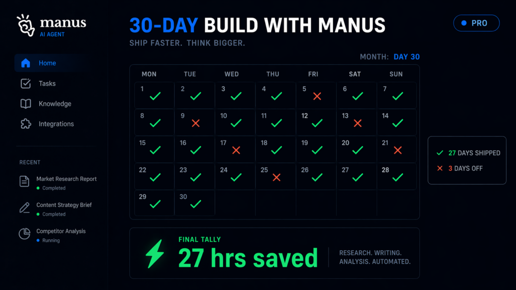 So I did that. For 30 days, I logged every task I sent to Manus Pro, estimated the time it would have taken me manually, and tracked whether the output was usable without significant editing. The honest answer is more complicated than the hype — and more useful.